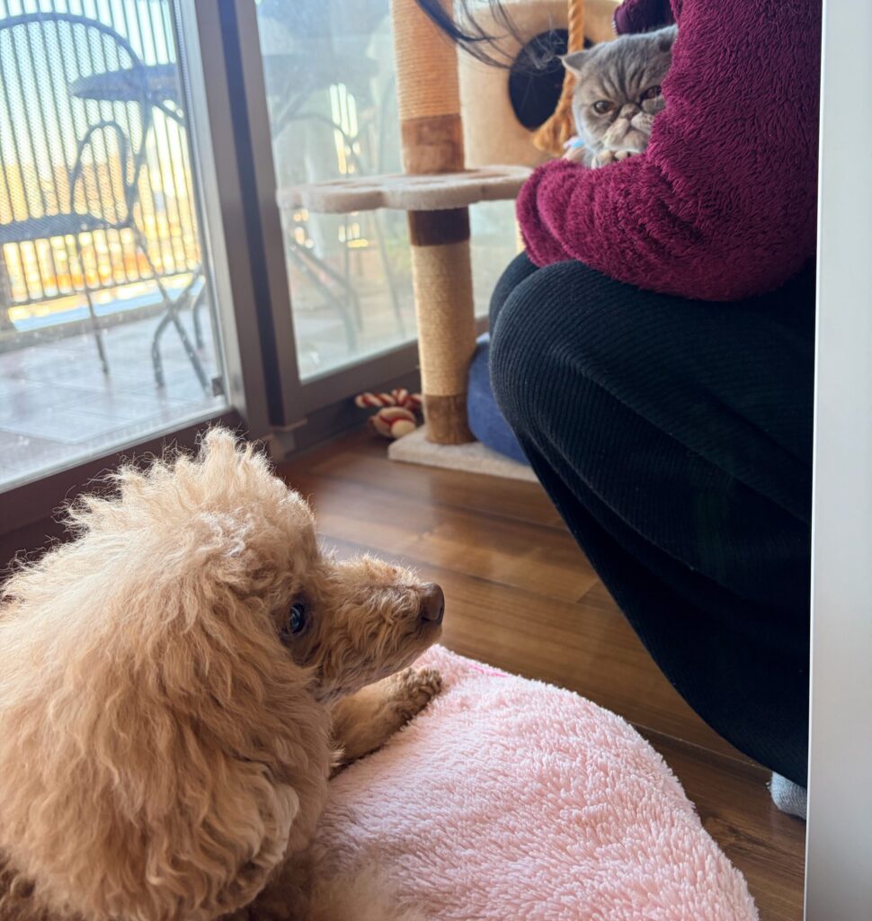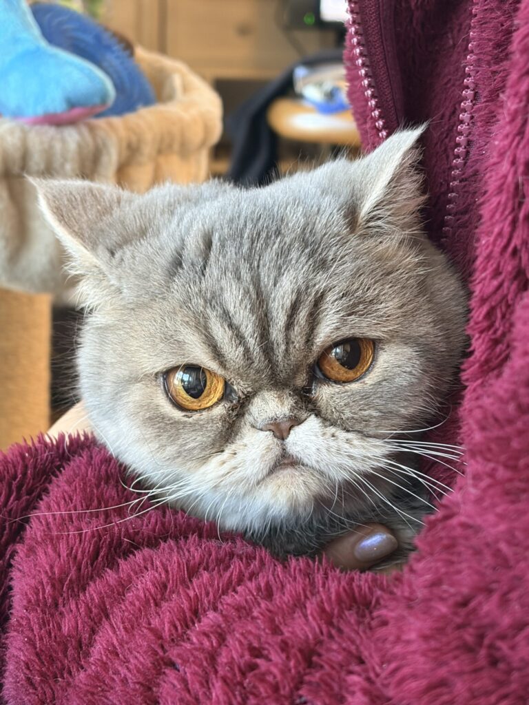 エキゾチックショートヘアのメルシーも一緒に来ましたが、うちの光成 ベティとはまだ距離があります😓